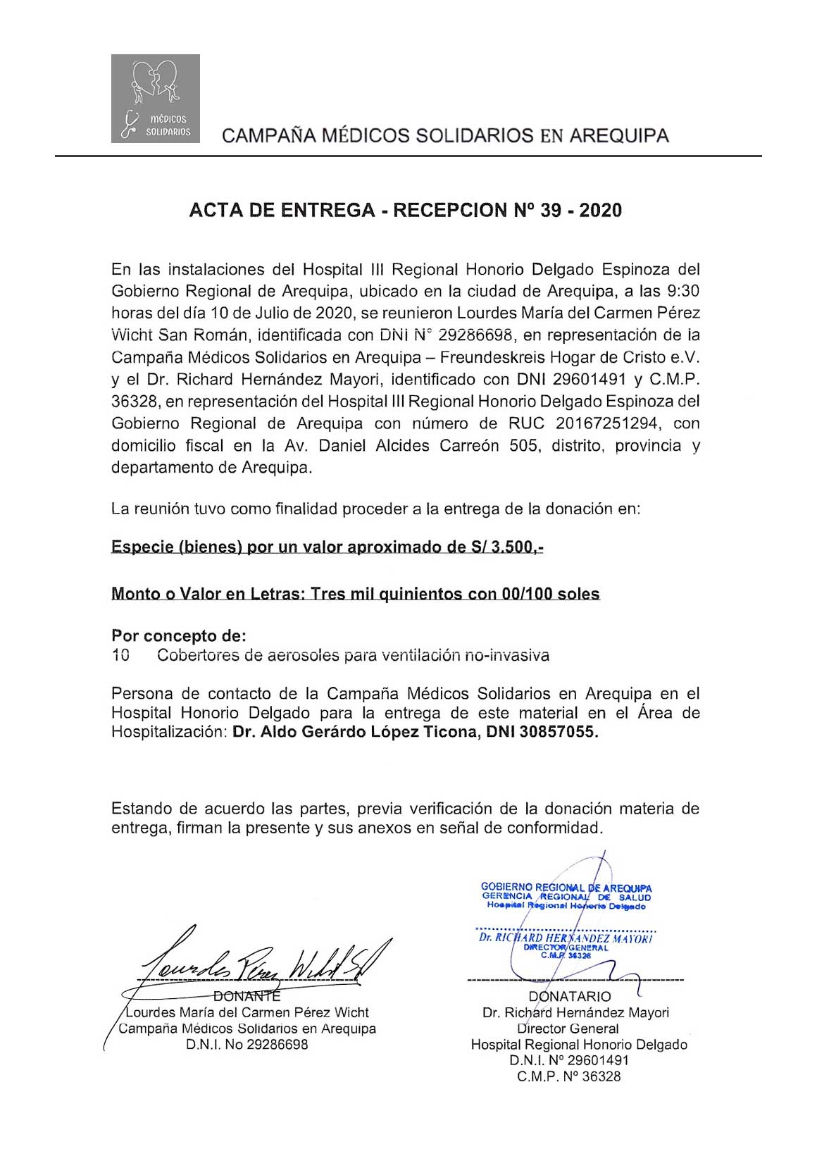 Donación al Hospital Honorio Delgado, 10 de Julio de 2020