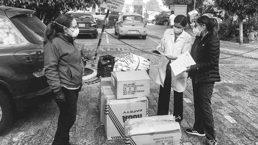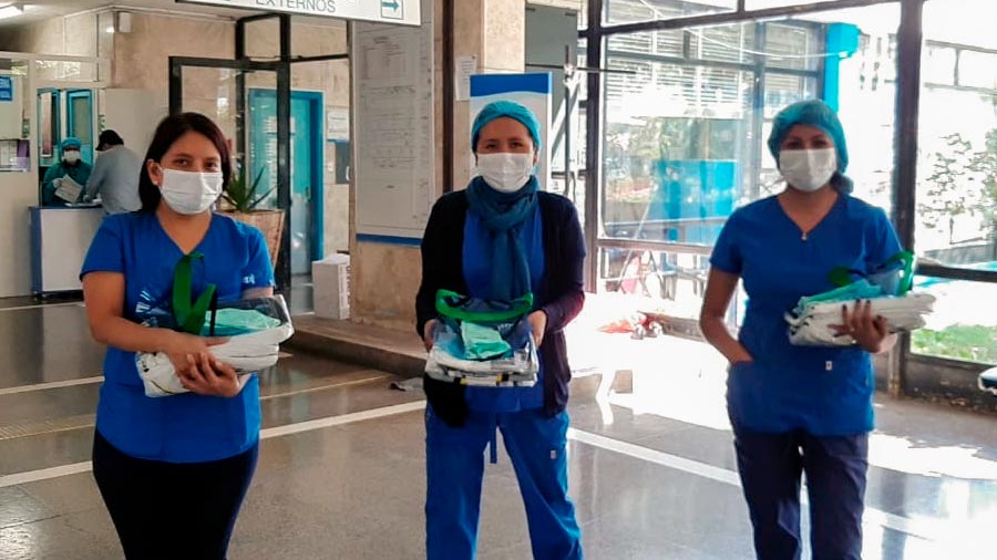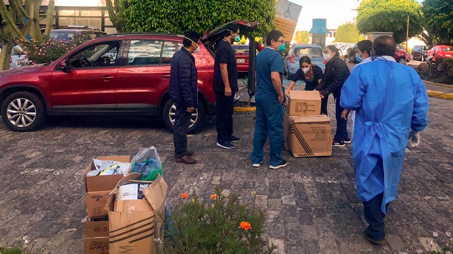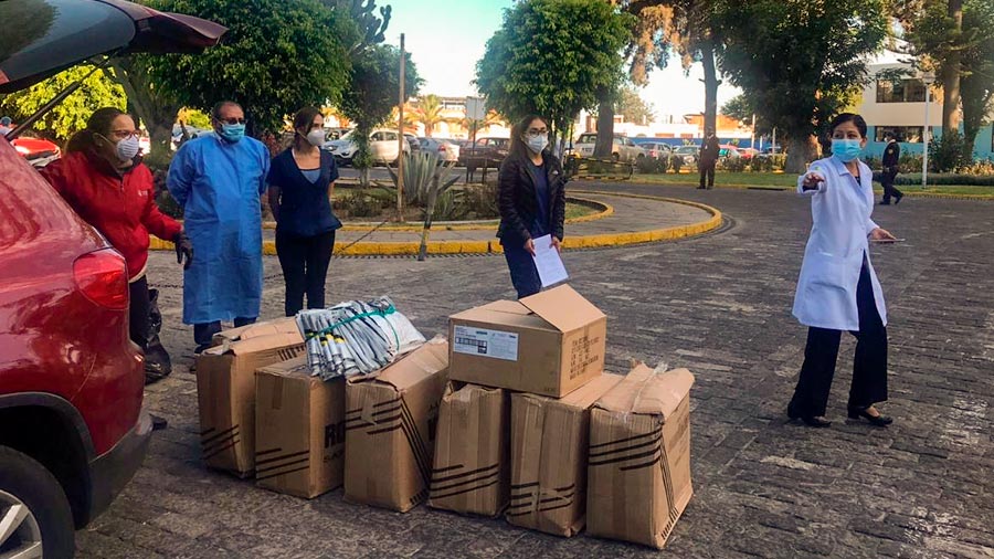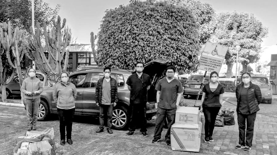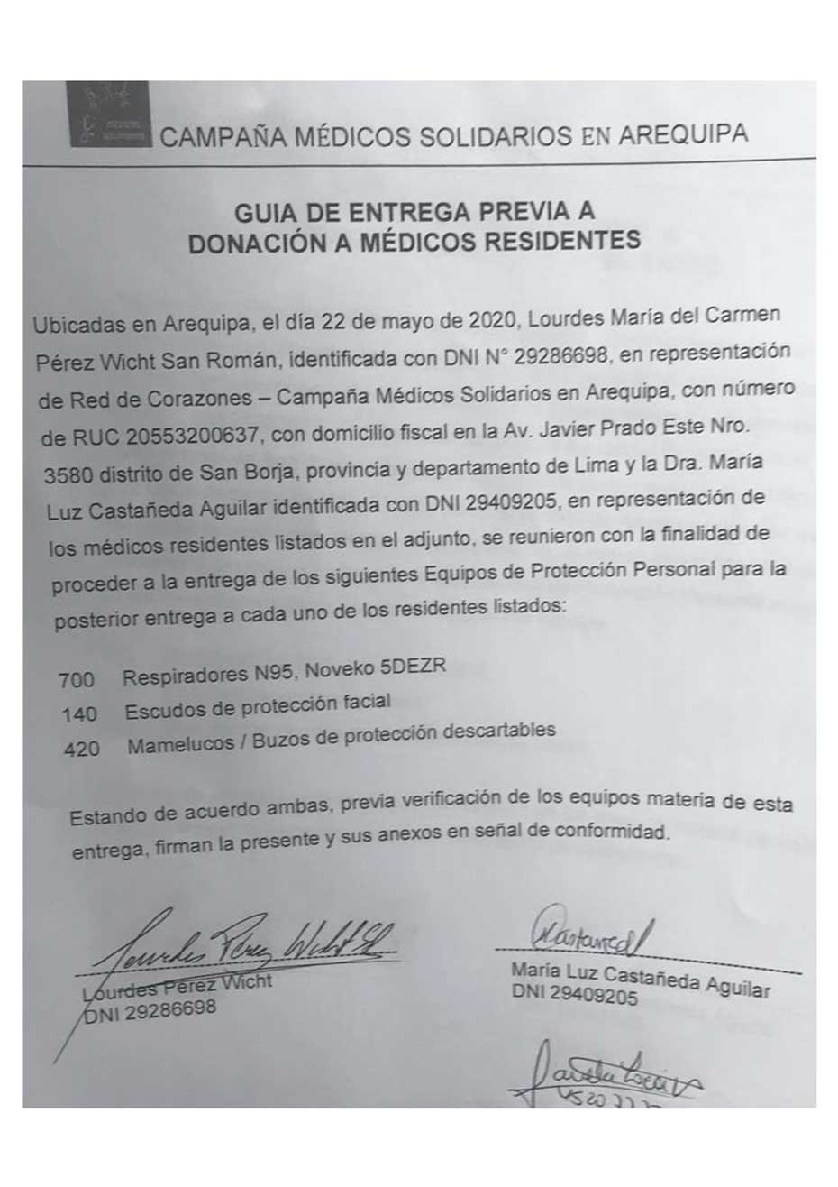 La Red de Corazones y la Campaña Médicos Solidarios en Arequipa entregan una donación a médicos residentes.